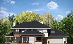 Graficzne opracowanie rzutów poglądowych widocznych na karcie projektu zostało wykonane przez Extradom.pl. Prezentowane przez Extradom.pl wizualizacje wykonane zostały przez autora projektu i należy poczytywać je jedynie za przykład i propozycję wykończenia, wizję architektoniczną autora projektu. Ostateczne wykończenie budynku może nastąpić na wiele sposobów. Szczegółowe rozwiązania zastosowane w oferowanej dokumentacji - w tym również ilość, lokalizacje i wygląd okien, drzwi, kominów - mogą w niewielkim stopniu różnić się od prezentowanej wizualizacji budynku.