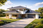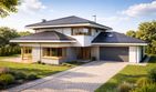 Graficzne opracowanie rzutów poglądowych widocznych na karcie projektu zostało wykonane przez Extradom.pl. Prezentowane przez Extradom.pl wizualizacje wykonane zostały przez autora projektu i należy poczytywać je jedynie za przykład i propozycję wykończenia, wizję architektoniczną autora projektu. Ostateczne wykończenie budynku może nastąpić na wiele sposobów. Szczegółowe rozwiązania zastosowane w oferowanej dokumentacji - w tym również ilość, lokalizacje i wygląd okien, drzwi, kominów - mogą w niewielkim stopniu różnić się od prezentowanej wizualizacji budynku.