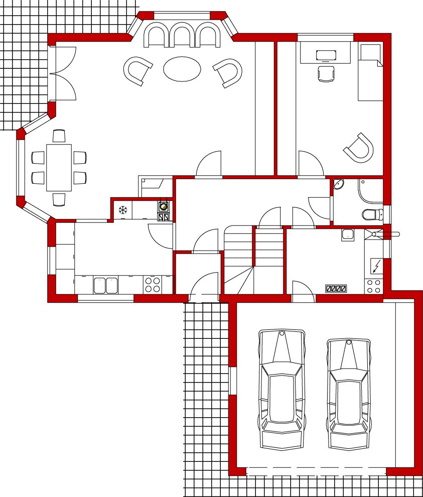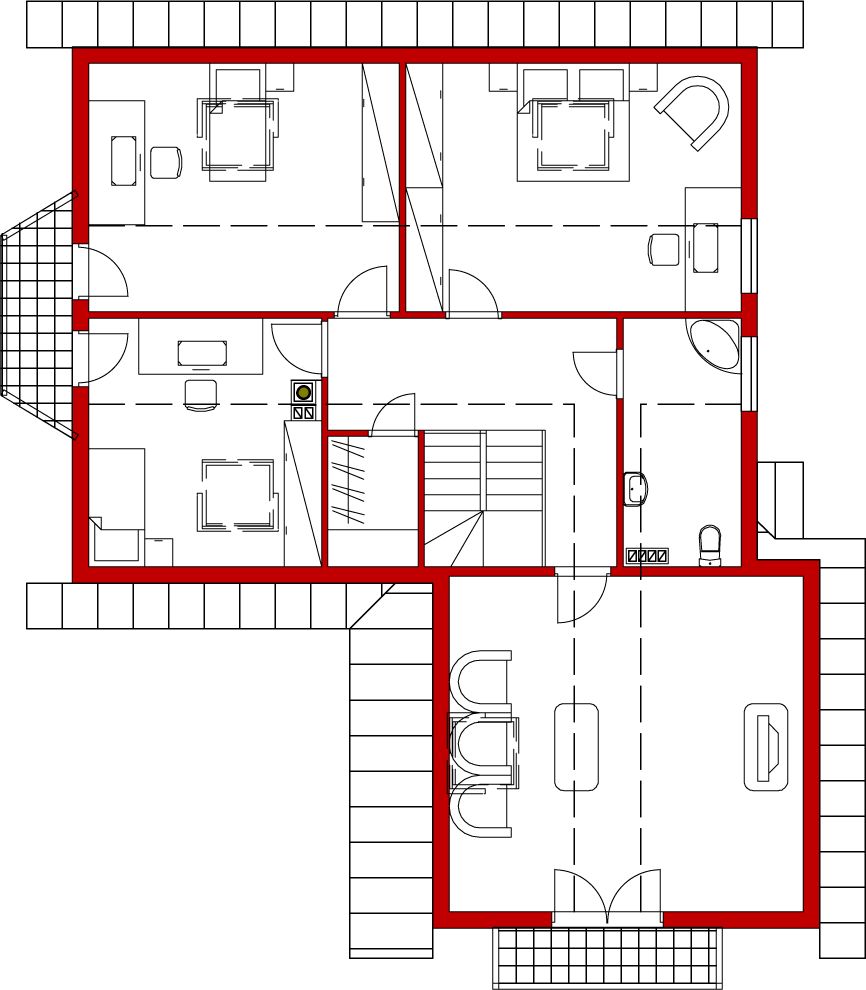 Graficzne opracowanie rzutów poglądowych widocznych na karcie projektu zostało wykonane przez Extradom.pl. Prezentowane przez Extradom.pl wizualizacje wykonane zostały przez autora projektu i należy poczytywać je jedynie za przykład i propozycję wykończenia, wizję architektoniczną autora projektu. Ostateczne wykończenie budynku może nastąpić na wiele sposobów. Szczegółowe rozwiązania zastosowane w oferowanej dokumentacji - w tym również ilość, lokalizacje i wygląd okien, drzwi, kominów - mogą w niewielkim stopniu różnić się od prezentowanej wizualizacji budynku.