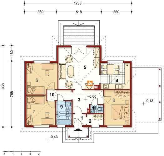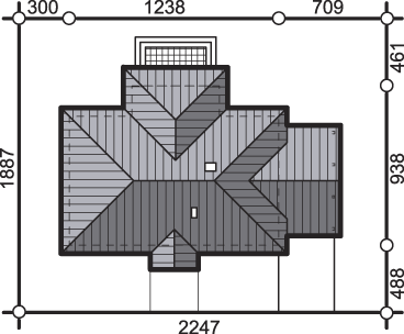 Graficzne opracowanie rzutów poglądowych widocznych na karcie projektu zostało wykonane przez Extradom.pl. Prezentowane przez Extradom.pl wizualizacje wykonane zostały przez autora projektu i należy poczytywać je jedynie za przykład i propozycję wykończenia, wizję architektoniczną autora projektu. Ostateczne wykończenie budynku może nastąpić na wiele sposobów. Szczegółowe rozwiązania zastosowane w oferowanej dokumentacji - w tym również ilość, lokalizacje i wygląd okien, drzwi, kominów - mogą w niewielkim stopniu różnić się od prezentowanej wizualizacji budynku.
