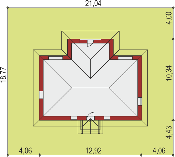 Graficzne opracowanie rzutów poglądowych widocznych na karcie projektu zostało wykonane przez Extradom.pl. Prezentowane przez Extradom.pl wizualizacje wykonane zostały przez autora projektu i należy poczytywać je jedynie za przykład i propozycję wykończenia, wizję architektoniczną autora projektu. Ostateczne wykończenie budynku może nastąpić na wiele sposobów. Szczegółowe rozwiązania zastosowane w oferowanej dokumentacji - w tym również ilość, lokalizacje i wygląd okien, drzwi, kominów - mogą w niewielkim stopniu różnić się od prezentowanej wizualizacji budynku.