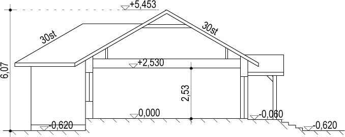 Ściany: silikaty 18cm+styropian 031 - 20cm (U=0,14 W/m2*K). Strop: drewniany belkowy (U=0,09 W/m2*K). Dach: gonty bitumiczne / dachówka / blacha.
