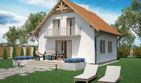 Graficzne opracowanie rzutów poglądowych widocznych na karcie projektu zostało wykonane przez Extradom.pl. Prezentowane przez Extradom.pl wizualizacje wykonane zostały przez autora projektu i należy poczytywać je jedynie za przykład i propozycję wykończenia, wizję architektoniczną autora projektu. Ostateczne wykończenie budynku może nastąpić na wiele sposobów. Szczegółowe rozwiązania zastosowane w oferowanej dokumentacji - w tym również ilość, lokalizacje i wygląd okien, drzwi, kominów - mogą w niewielkim stopniu różnić się od prezentowanej wizualizacji budynku.
