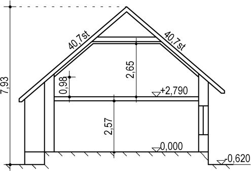 Ściany: silikaty 18cm+styropian 031 - 30cm (U=0,09 W/m2*K). Strop: żelbetowy. Dach: gonty bitumiczne / dachówka / blacha (U=0,09 W/m2*K).
