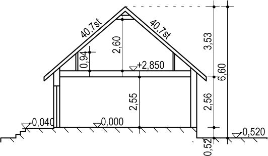 Ściany: szkieletowe15 cm+styropian ryflowany 15cm (U=0,11 W/m2*K). Strop: drewniany belkowy. Dach: gonty bitumiczne / dachówka / blacha (U=0,19 W/m2*K).