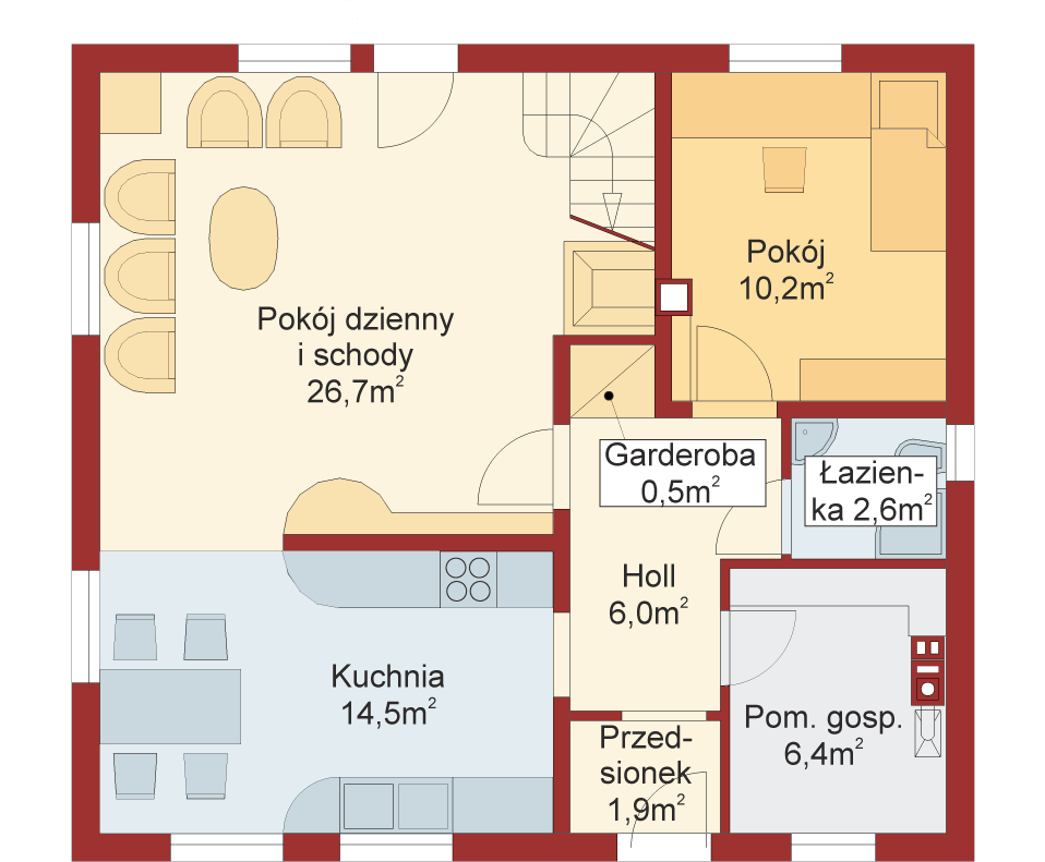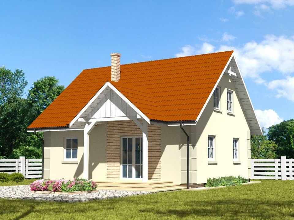 Graficzne opracowanie rzutów poglądowych widocznych na karcie projektu zostało wykonane przez Extradom.pl. Prezentowane przez Extradom.pl wizualizacje wykonane zostały przez autora projektu i należy poczytywać je jedynie za przykład i propozycję wykończenia, wizję architektoniczną autora projektu. Ostateczne wykończenie budynku może nastąpić na wiele sposobów. Szczegółowe rozwiązania zastosowane w oferowanej dokumentacji - w tym również ilość, lokalizacje i wygląd okien, drzwi, kominów - mogą w niewielkim stopniu różnić się od prezentowanej wizualizacji budynku.