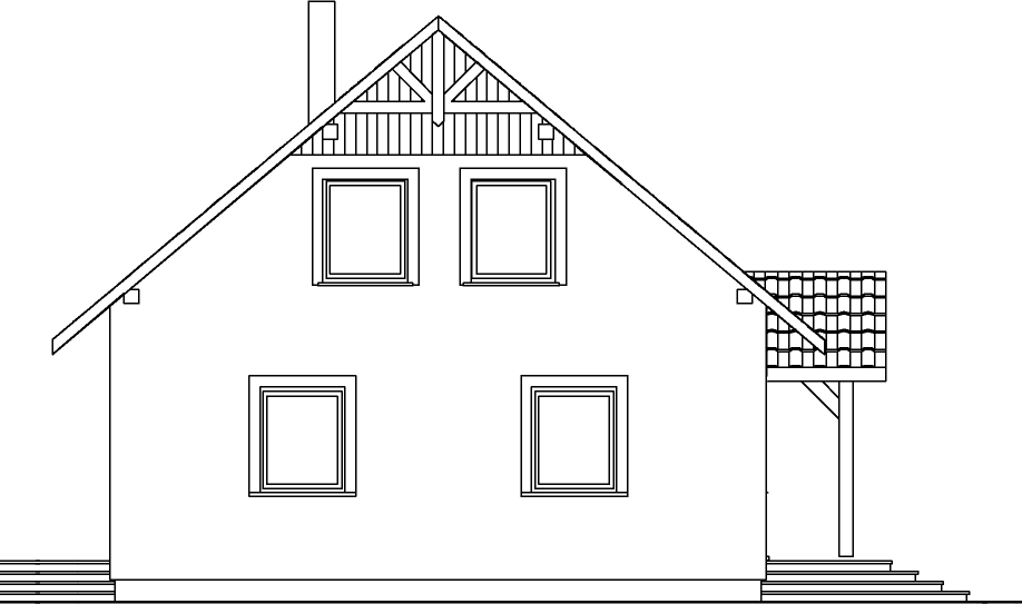 Konstrukcja szkieletowa z drewna czterostronnie struganego, suszonego komorowo klasy C-24. (U=0,10 W/m2*K). Strop: drewniany, belkowy. Pokrycie dachu: gonty / dachówka / blacha.
