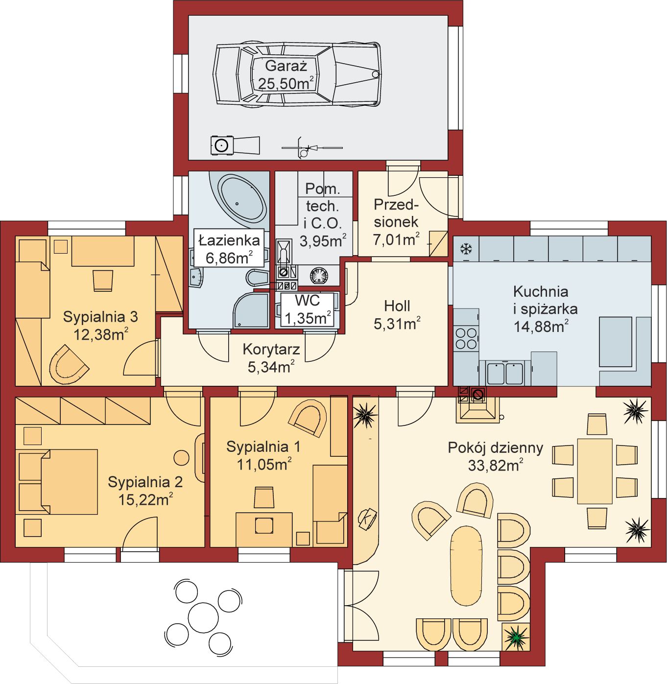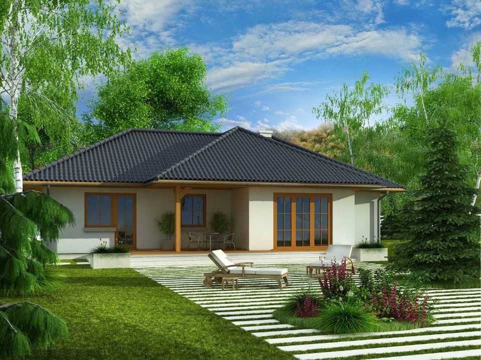 Szukając projektu zależało mi na budynku parterowym. Projekt domu Domek Sosnowy+G SLF1019 przewiduje jedną kondygnację i posiada bardzo funkcjonalny układ pomieszczeń. Dodatkowo jego rozmieszczenie pokoi świetnie pasuje do naszej działki pod względem kierunków świata.Podczas realizacji nie mieliśmy żadnych znaczących kłopotów. Gdy pojawiały się drobne problemy, natychmiast rozwiązywał je kierownik budowy. Projekt był czytelny i nie było potrzeby konsultowania się w trakcie z architektem. Ściany zewnętrzne naszego domu zostały wybudowane z gazobetonu. Dach pokryliśmy dachówką cementową, a całą bryłę ociepliliśmy białym styropianem. Warstwa izolacyjna została wykonana metodą „lekką-mokrą”.Projekt domu Domek Sosnowy+G SLF1019 przewidywał ogrzewanie gazem, jednak w naszej miejscowości nie ma do niego dostępu. Zdecydowaliśmy się więc na instalację pieca węglowego z podajnikiem na ekogroszek. Myślę, że jest to najmniej obsługowy sposób grzania z innych, które były dla nas dostępne.Jedyna zmiana, którą wprowadziliśmy w projekcie wynikała z warunków zabudowy w naszej miejscowości. Określają one, iż główna kalenica musi być równoległa do drogi gminnej, więc aby uzyskać pozwolenie na budowę musieliśmy zmienić konstrukcję dachu. Nie chcieliśmy z racji tego przekształcać bryły budynku, więc postanowiliśmy nieco zmodyfikować układ pomieszczeń. Jedna ze ścian salonu musiała zostać przesunięta o 60cm. W związku z tym część dzienna zwiększyła się kosztem sypialni o ok. 1,5m2.Nasz dom usytuowany jest na działce tak, iż strefa wypoczynkowa wraz z kuchnią znajdują się po stronie południowej. Tym samym salon i taras mamy po stronie zachodniej, co bardzo nam odpowiada. Dzięki takiemu ułożeniu budynku, część dzienna jest świetnie oświetlona cały dzień, a w sypialniach jest ciemniej. Świetnym rozwiązaniem jest duża liczba okien w salonie, gdyż wpuszczają one do pomieszczenia wiele słońca niezależnie od pory dnia.Cieszę się z wyboru projektu domu parterowego Domek Sosnowy+G SLF1019. Jedyne, czego mi w nim brakuje to pomieszczenie gospodarcze, w którym można składować różne rzeczy. Poradziłem sobie z tym jednak i obok domu wybudowałem oddzielny budynek gospodarczy do przechowywania sprzętu ogrodowego i opału. Jestem natomiast bardzo zadowolony z bardzo przestronnego salonu i jadalni. Duża część wypoczynkowa to niewątpliwie największy atut tego domu. Polecam i pozdrawiam.