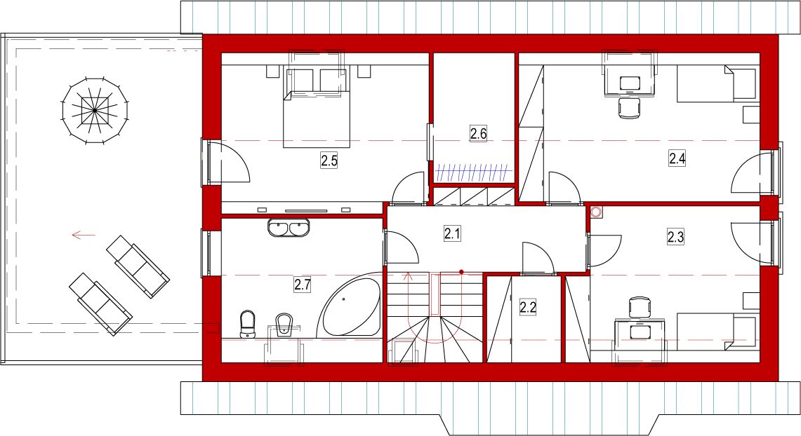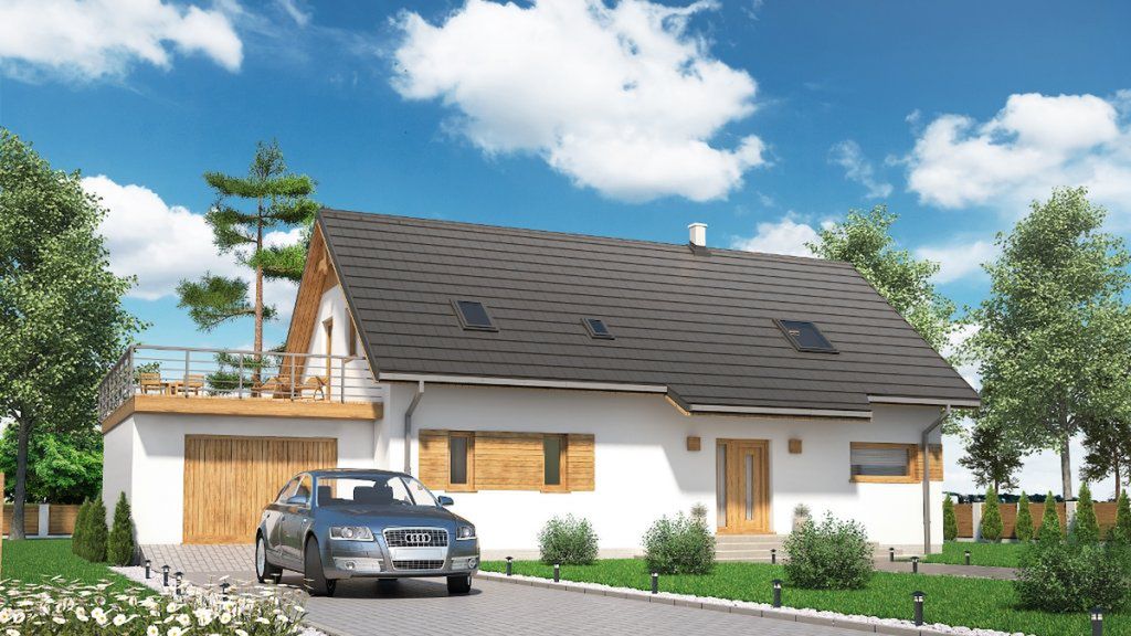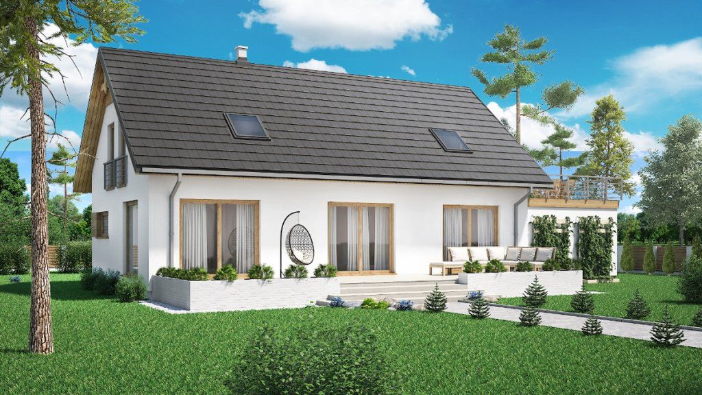 Graficzne opracowanie rzutów poglądowych widocznych na karcie projektu zostało wykonane przez Extradom.pl. Prezentowane przez Extradom.pl wizualizacje wykonane zostały przez autora projektu i należy poczytywać je jedynie za przykład i propozycję wykończenia, wizję architektoniczną autora projektu. Ostateczne wykończenie budynku może nastąpić na wiele sposobów. Szczegółowe rozwiązania zastosowane w oferowanej dokumentacji - w tym również ilość, lokalizacje i wygląd okien, drzwi, kominów - mogą w niewielkim stopniu różnić się od prezentowanej wizualizacji budynku.
