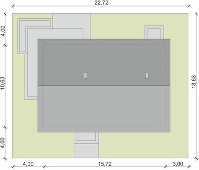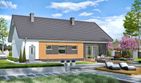 Graficzne opracowanie rzutów poglądowych widocznych na karcie projektu zostało wykonane przez Extradom.pl. Prezentowane przez Extradom.pl wizualizacje wykonane zostały przez autora projektu i należy poczytywać je jedynie za przykład i propozycję wykończenia, wizję architektoniczną autora projektu. Ostateczne wykończenie budynku może nastąpić na wiele sposobów. Szczegółowe rozwiązania zastosowane w oferowanej dokumentacji - w tym również ilość, lokalizacje i wygląd okien, drzwi, kominów - mogą w niewielkim stopniu różnić się od prezentowanej wizualizacji budynku.