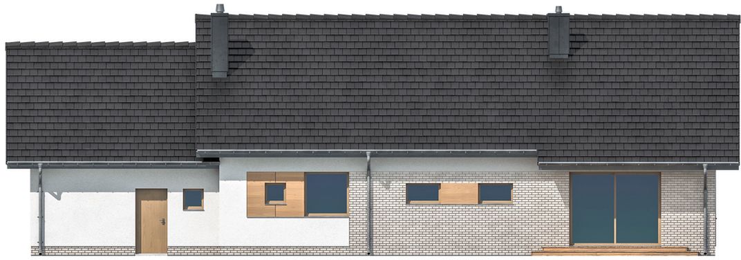 Graficzne opracowanie rzutów poglądowych widocznych na karcie projektu zostało wykonane przez Extradom.pl. Prezentowane przez Extradom.pl wizualizacje wykonane zostały przez autora projektu i należy poczytywać je jedynie za przykład i propozycję wykończenia, wizję architektoniczną autora projektu. Ostateczne wykończenie budynku może nastąpić na wiele sposobów. Szczegółowe rozwiązania zastosowane w oferowanej dokumentacji - w tym również ilość, lokalizacje i wygląd okien, drzwi, kominów - mogą w niewielkim stopniu różnić się od prezentowanej wizualizacji budynku.