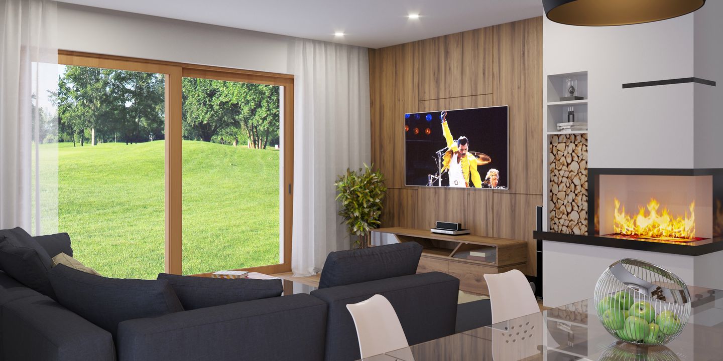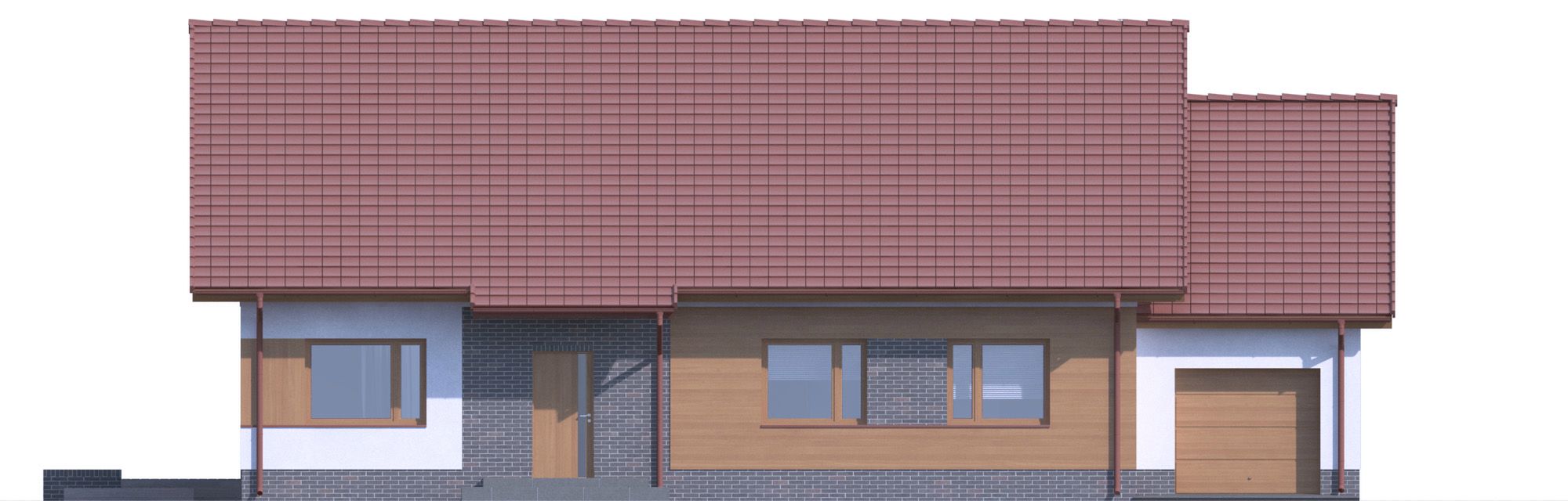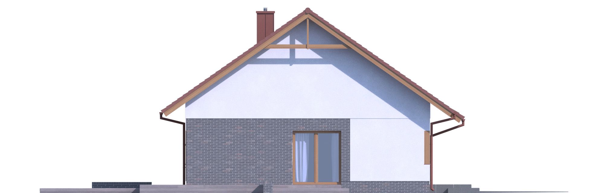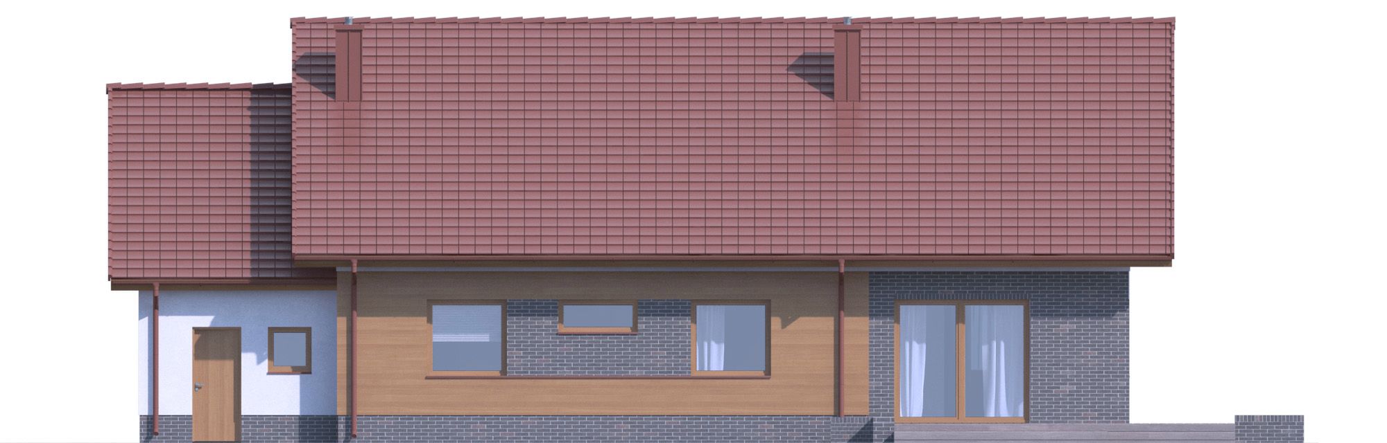 Graficzne opracowanie rzutów poglądowych widocznych na karcie projektu zostało wykonane przez Extradom.pl. Prezentowane przez Extradom.pl wizualizacje wykonane zostały przez autora projektu i należy poczytywać je jedynie za przykład i propozycję wykończenia, wizję architektoniczną autora projektu. Ostateczne wykończenie budynku może nastąpić na wiele sposobów. Szczegółowe rozwiązania zastosowane w oferowanej dokumentacji - w tym również ilość, lokalizacje i wygląd okien, drzwi, kominów - mogą w niewielkim stopniu różnić się od prezentowanej wizualizacji budynku.