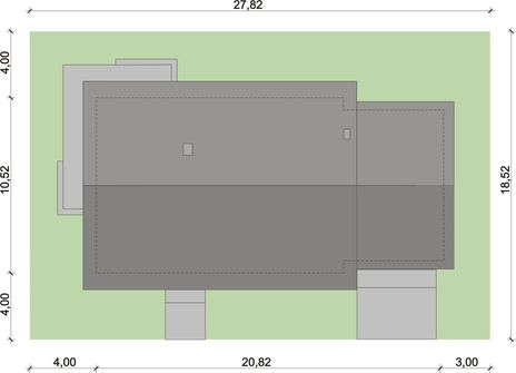Graficzne opracowanie rzutów poglądowych widocznych na karcie projektu zostało wykonane przez Extradom.pl. Prezentowane przez Extradom.pl wizualizacje wykonane zostały przez autora projektu i należy poczytywać je jedynie za przykład i propozycję wykończenia, wizję architektoniczną autora projektu. Ostateczne wykończenie budynku może nastąpić na wiele sposobów. Szczegółowe rozwiązania zastosowane w oferowanej dokumentacji - w tym również ilość, lokalizacje i wygląd okien, drzwi, kominów - mogą w niewielkim stopniu różnić się od prezentowanej wizualizacji budynku.