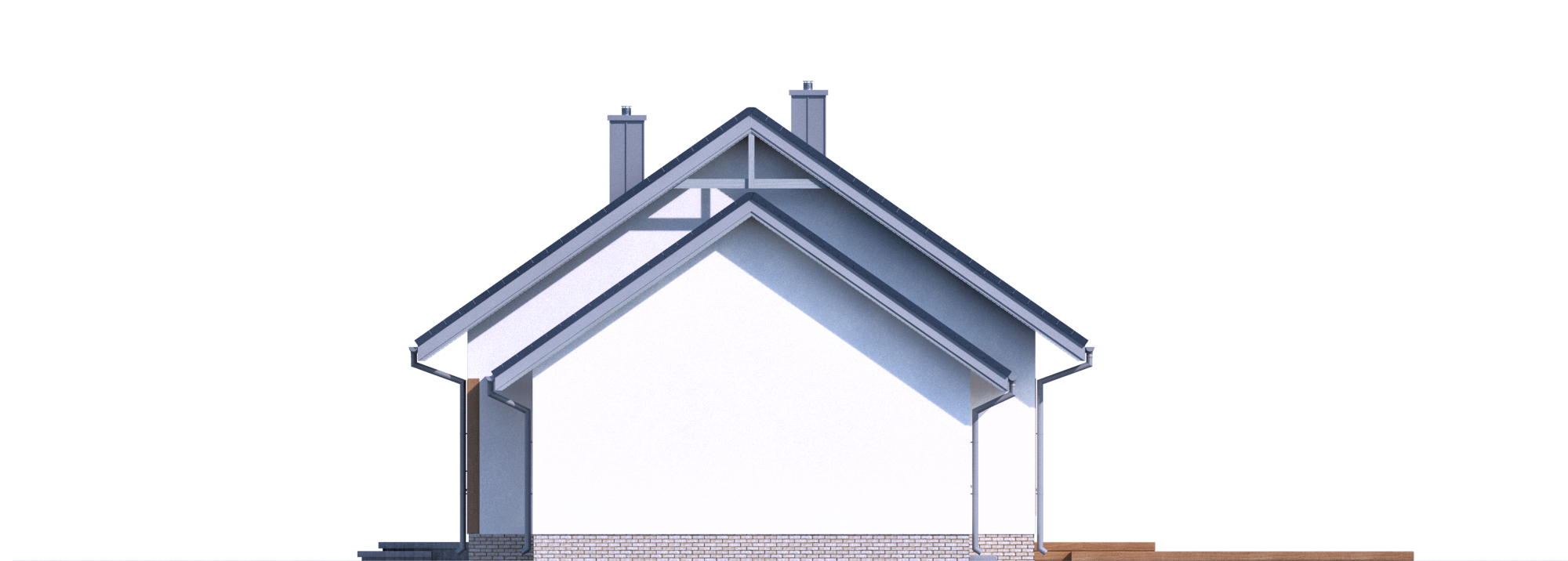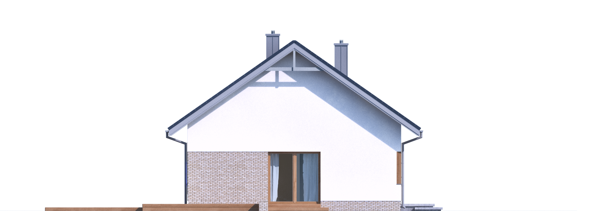 Graficzne opracowanie rzutów poglądowych widocznych na karcie projektu zostało wykonane przez Extradom.pl. Prezentowane przez Extradom.pl wizualizacje wykonane zostały przez autora projektu i należy poczytywać je jedynie za przykład i propozycję wykończenia, wizję architektoniczną autora projektu. Ostateczne wykończenie budynku może nastąpić na wiele sposobów. Szczegółowe rozwiązania zastosowane w oferowanej dokumentacji - w tym również ilość, lokalizacje i wygląd okien, drzwi, kominów - mogą w niewielkim stopniu różnić się od prezentowanej wizualizacji budynku.