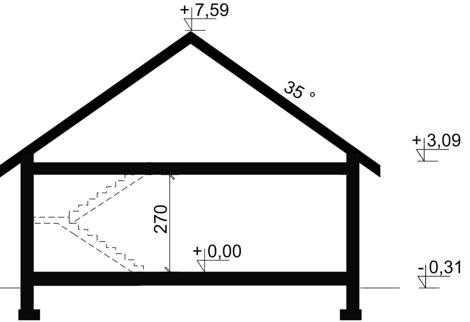 Fundamenty: bezpośrednie, na ławach i stopach fundamentowych. Ściany zewnętrzne: bloczki z bet. komórkowego (odm. 600) - 24 cm + styropian TERMO ORGANIKA typ Fasada 20 cm. Ściany wewnętrzne: bloczki z bet. komórkowego (odm. 600) - 24 cm (działowe - 12 cm). Strop: Teriva E (ocieplenie ISOVER Super Mata). Elewacje: tynk - system firmy TERMO ORGANIKA, płyta elewacyjna, płytki klinkierowe. Pokrycie dachu: dachówka cementowa. Konstrukcja dachu: drewniana o układzie konstrukcyjnym mieszanym. Schody wewnętrzne: wyłaz na poddasze. Ogrzewanie: kocioł gazowy kondensacyjny lub kocioł na paliwo stałe dodatkowe źródło ciepła - kominek z płaszczem wodnym. Projekt jest zgodny z wymaganiami WT2024, a konstrukcja była obliczana zgodnie z eurokodami.