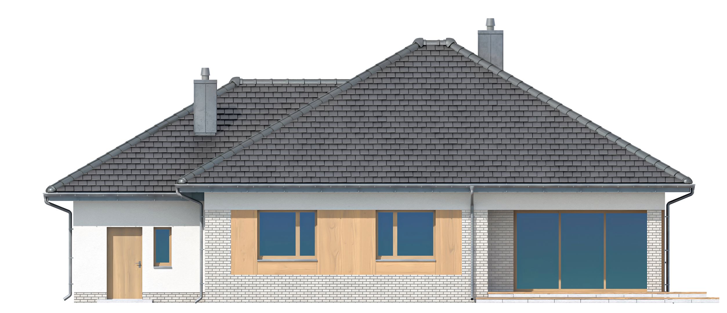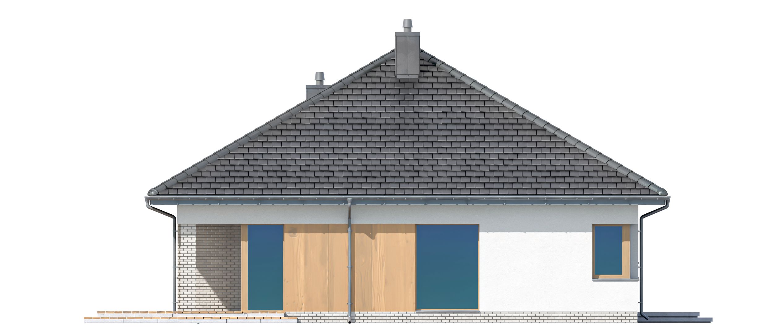 Graficzne opracowanie rzutów poglądowych widocznych na karcie projektu zostało wykonane przez Extradom.pl. Prezentowane przez Extradom.pl wizualizacje wykonane zostały przez autora projektu i należy poczytywać je jedynie za przykład i propozycję wykończenia, wizję architektoniczną autora projektu. Ostateczne wykończenie budynku może nastąpić na wiele sposobów. Szczegółowe rozwiązania zastosowane w oferowanej dokumentacji - w tym również ilość, lokalizacje i wygląd okien, drzwi, kominów - mogą w niewielkim stopniu różnić się od prezentowanej wizualizacji budynku.