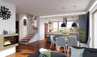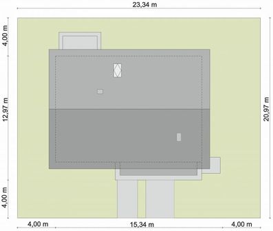 Graficzne opracowanie rzutów poglądowych widocznych na karcie projektu zostało wykonane przez Extradom.pl. Prezentowane przez Extradom.pl wizualizacje wykonane zostały przez autora projektu i należy poczytywać je jedynie za przykład i propozycję wykończenia, wizję architektoniczną autora projektu. Ostateczne wykończenie budynku może nastąpić na wiele sposobów. Szczegółowe rozwiązania zastosowane w oferowanej dokumentacji - w tym również ilość, lokalizacje i wygląd okien, drzwi, kominów - mogą w niewielkim stopniu różnić się od prezentowanej wizualizacji budynku.