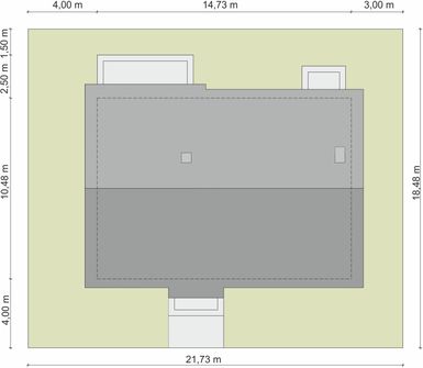 Graficzne opracowanie rzutów poglądowych widocznych na karcie projektu zostało wykonane przez Extradom.pl. Prezentowane przez Extradom.pl wizualizacje wykonane zostały przez autora projektu i należy poczytywać je jedynie za przykład i propozycję wykończenia, wizję architektoniczną autora projektu. Ostateczne wykończenie budynku może nastąpić na wiele sposobów. Szczegółowe rozwiązania zastosowane w oferowanej dokumentacji - w tym również ilość, lokalizacje i wygląd okien, drzwi, kominów - mogą w niewielkim stopniu różnić się od prezentowanej wizualizacji budynku.