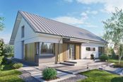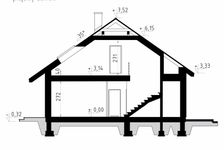 Fundamenty: bezpośrednie, na ławach i stopach fundamentowych. Ściany zewnętrzne: bloczki wapienno-piaskowe - 24 cm + styropian TERMO ORGANIKA typ Fasada 18- 22 cm. Ściany wewnętrzne: dzialowe - bloczki wapienno-piaskowe - 8 cm, 12 cm+ dzialowe z plyty G-K na ruszcie( poddasze). Strop: żelbetowy monolityczny. Elewacje: tynk - systemowy firmy TERMO ORGANIKA, lamele elewacyjne. Pokrycie dachu: blacha na rąbek stojacy. Konstrukcja dachu: tradycyjna drewniana. Schody wewnętrzne: schody monolityczne. Ogrzewanie: kocioł na paliwo stałe dodatkowe zrodlo ciepla - kominek. Projekt jest zgodny z wymaganiami WT2025