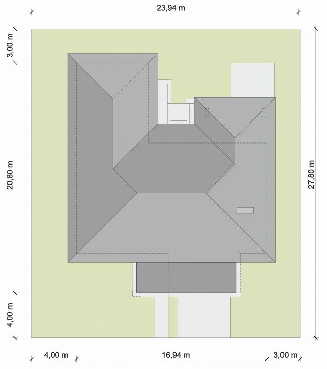 Graficzne opracowanie rzutów poglądowych widocznych na karcie projektu zostało wykonane przez Extradom.pl. Prezentowane przez Extradom.pl wizualizacje wykonane zostały przez autora projektu i należy poczytywać je jedynie za przykład i propozycję wykończenia, wizję architektoniczną autora projektu. Ostateczne wykończenie budynku może nastąpić na wiele sposobów. Szczegółowe rozwiązania zastosowane w oferowanej dokumentacji - w tym również ilość, lokalizacje i wygląd okien, drzwi, kominów - mogą w niewielkim stopniu różnić się od prezentowanej wizualizacji budynku.