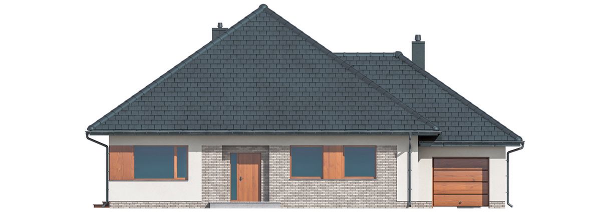 Graficzne opracowanie rzutów poglądowych widocznych na karcie projektu zostało wykonane przez Extradom.pl. Prezentowane przez Extradom.pl wizualizacje wykonane zostały przez autora projektu i należy poczytywać je jedynie za przykład i propozycję wykończenia, wizję architektoniczną autora projektu. Ostateczne wykończenie budynku może nastąpić na wiele sposobów. Szczegółowe rozwiązania zastosowane w oferowanej dokumentacji - w tym również ilość, lokalizacje i wygląd okien, drzwi, kominów - mogą w niewielkim stopniu różnić się od prezentowanej wizualizacji budynku.