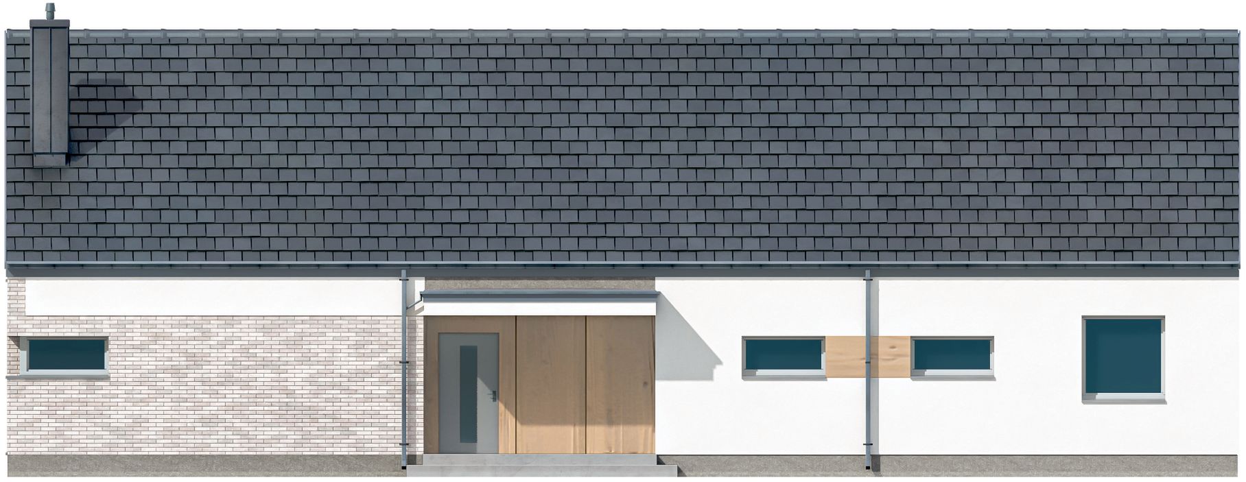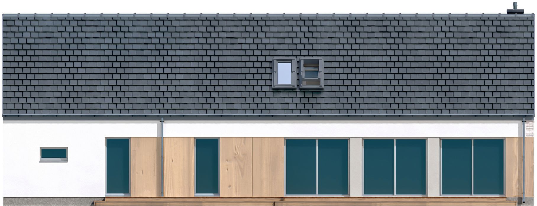 Graficzne opracowanie rzutów poglądowych widocznych na karcie projektu zostało wykonane przez Extradom.pl. Prezentowane przez Extradom.pl wizualizacje wykonane zostały przez autora projektu i należy poczytywać je jedynie za przykład i propozycję wykończenia, wizję architektoniczną autora projektu. Ostateczne wykończenie budynku może nastąpić na wiele sposobów. Szczegółowe rozwiązania zastosowane w oferowanej dokumentacji - w tym również ilość, lokalizacje i wygląd okien, drzwi, kominów - mogą w niewielkim stopniu różnić się od prezentowanej wizualizacji budynku.