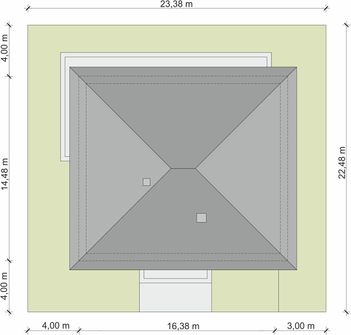 Graficzne opracowanie rzutów poglądowych widocznych na karcie projektu zostało wykonane przez Extradom.pl. Prezentowane przez Extradom.pl wizualizacje wykonane zostały przez autora projektu i należy poczytywać je jedynie za przykład i propozycję wykończenia, wizję architektoniczną autora projektu. Ostateczne wykończenie budynku może nastąpić na wiele sposobów. Szczegółowe rozwiązania zastosowane w oferowanej dokumentacji - w tym również ilość, lokalizacje i wygląd okien, drzwi, kominów - mogą w niewielkim stopniu różnić się od prezentowanej wizualizacji budynku.
