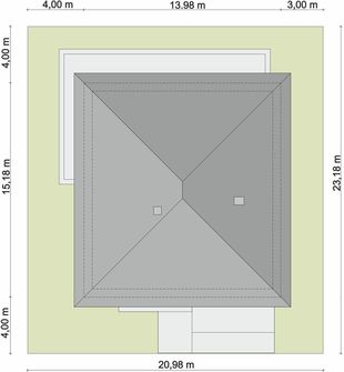 Graficzne opracowanie rzutów poglądowych widocznych na karcie projektu zostało wykonane przez Extradom.pl. Prezentowane przez Extradom.pl wizualizacje wykonane zostały przez autora projektu i należy poczytywać je jedynie za przykład i propozycję wykończenia, wizję architektoniczną autora projektu. Ostateczne wykończenie budynku może nastąpić na wiele sposobów. Szczegółowe rozwiązania zastosowane w oferowanej dokumentacji - w tym również ilość, lokalizacje i wygląd okien, drzwi, kominów - mogą w niewielkim stopniu różnić się od prezentowanej wizualizacji budynku.
