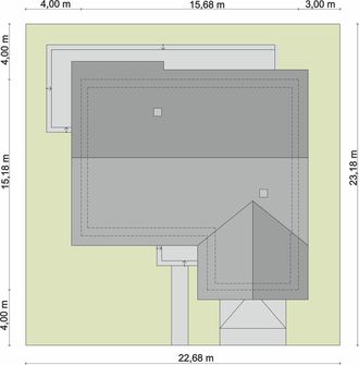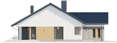 Graficzne opracowanie rzutów poglądowych widocznych na karcie projektu zostało wykonane przez Extradom.pl. Prezentowane przez Extradom.pl wizualizacje wykonane zostały przez autora projektu i należy poczytywać je jedynie za przykład i propozycję wykończenia, wizję architektoniczną autora projektu. Ostateczne wykończenie budynku może nastąpić na wiele sposobów. Szczegółowe rozwiązania zastosowane w oferowanej dokumentacji - w tym również ilość, lokalizacje i wygląd okien, drzwi, kominów - mogą w niewielkim stopniu różnić się od prezentowanej wizualizacji budynku.