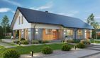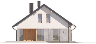 Graficzne opracowanie rzutów poglądowych widocznych na karcie projektu zostało wykonane przez Extradom.pl. Prezentowane przez Extradom.pl wizualizacje wykonane zostały przez autora projektu i należy poczytywać je jedynie za przykład i propozycję wykończenia, wizję architektoniczną autora projektu. Ostateczne wykończenie budynku może nastąpić na wiele sposobów. Szczegółowe rozwiązania zastosowane w oferowanej dokumentacji - w tym również ilość, lokalizacje i wygląd okien, drzwi, kominów - mogą w niewielkim stopniu różnić się od prezentowanej wizualizacji budynku.