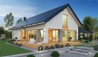 Graficzne opracowanie rzutów poglądowych widocznych na karcie projektu zostało wykonane przez Extradom.pl. Prezentowane przez Extradom.pl wizualizacje wykonane zostały przez autora projektu i należy poczytywać je jedynie za przykład i propozycję wykończenia, wizję architektoniczną autora projektu. Ostateczne wykończenie budynku może nastąpić na wiele sposobów. Szczegółowe rozwiązania zastosowane w oferowanej dokumentacji - w tym również ilość, lokalizacje i wygląd okien, drzwi, kominów - mogą w niewielkim stopniu różnić się od prezentowanej wizualizacji budynku.