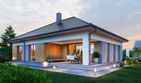 Graficzne opracowanie rzutów poglądowych widocznych na karcie projektu zostało wykonane przez Extradom.pl. Prezentowane przez Extradom.pl wizualizacje wykonane zostały przez autora projektu i należy poczytywać je jedynie za przykład i propozycję wykończenia, wizję architektoniczną autora projektu. Ostateczne wykończenie budynku może nastąpić na wiele sposobów. Szczegółowe rozwiązania zastosowane w oferowanej dokumentacji - w tym również ilość, lokalizacje i wygląd okien, drzwi, kominów - mogą w niewielkim stopniu różnić się od prezentowanej wizualizacji budynku.