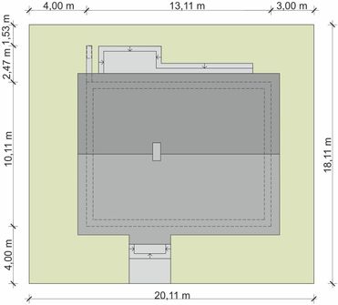 Graficzne opracowanie rzutów poglądowych widocznych na karcie projektu zostało wykonane przez Extradom.pl. Prezentowane przez Extradom.pl wizualizacje wykonane zostały przez autora projektu i należy poczytywać je jedynie za przykład i propozycję wykończenia, wizję architektoniczną autora projektu. Ostateczne wykończenie budynku może nastąpić na wiele sposobów. Szczegółowe rozwiązania zastosowane w oferowanej dokumentacji - w tym również ilość, lokalizacje i wygląd okien, drzwi, kominów - mogą w niewielkim stopniu różnić się od prezentowanej wizualizacji budynku.