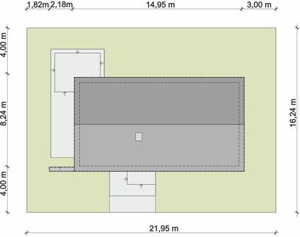 Graficzne opracowanie rzutów poglądowych widocznych na karcie projektu zostało wykonane przez Extradom.pl. Prezentowane przez Extradom.pl wizualizacje wykonane zostały przez autora projektu i należy poczytywać je jedynie za przykład i propozycję wykończenia, wizję architektoniczną autora projektu. Ostateczne wykończenie budynku może nastąpić na wiele sposobów. Szczegółowe rozwiązania zastosowane w oferowanej dokumentacji - w tym również ilość, lokalizacje i wygląd okien, drzwi, kominów - mogą w niewielkim stopniu różnić się od prezentowanej wizualizacji budynku.