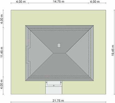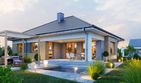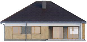 Graficzne opracowanie rzutów poglądowych widocznych na karcie projektu zostało wykonane przez Extradom.pl. Prezentowane przez Extradom.pl wizualizacje wykonane zostały przez autora projektu i należy poczytywać je jedynie za przykład i propozycję wykończenia, wizję architektoniczną autora projektu. Ostateczne wykończenie budynku może nastąpić na wiele sposobów. Szczegółowe rozwiązania zastosowane w oferowanej dokumentacji - w tym również ilość, lokalizacje i wygląd okien, drzwi, kominów - mogą w niewielkim stopniu różnić się od prezentowanej wizualizacji budynku.