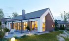 Graficzne opracowanie rzutów poglądowych widocznych na karcie projektu zostało wykonane przez Extradom.pl. Prezentowane przez Extradom.pl wizualizacje wykonane zostały przez autora projektu i należy poczytywać je jedynie za przykład i propozycję wykończenia, wizję architektoniczną autora projektu. Ostateczne wykończenie budynku może nastąpić na wiele sposobów. Szczegółowe rozwiązania zastosowane w oferowanej dokumentacji - w tym również ilość, lokalizacje i wygląd okien, drzwi, kominów - mogą w niewielkim stopniu różnić się od prezentowanej wizualizacji budynku.