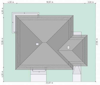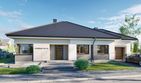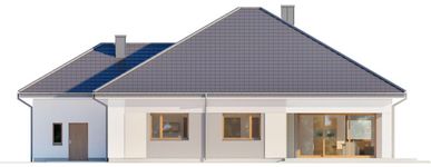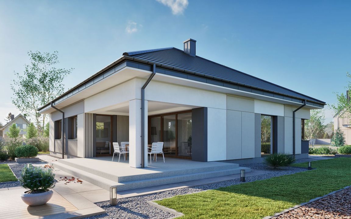 Graficzne opracowanie rzutów poglądowych widocznych na karcie projektu zostało wykonane przez Extradom.pl. Prezentowane przez Extradom.pl wizualizacje wykonane zostały przez autora projektu i należy poczytywać je jedynie za przykład i propozycję wykończenia, wizję architektoniczną autora projektu. Ostateczne wykończenie budynku może nastąpić na wiele sposobów. Szczegółowe rozwiązania zastosowane w oferowanej dokumentacji - w tym również ilość, lokalizacje i wygląd okien, drzwi, kominów - mogą w niewielkim stopniu różnić się od prezentowanej wizualizacji budynku.