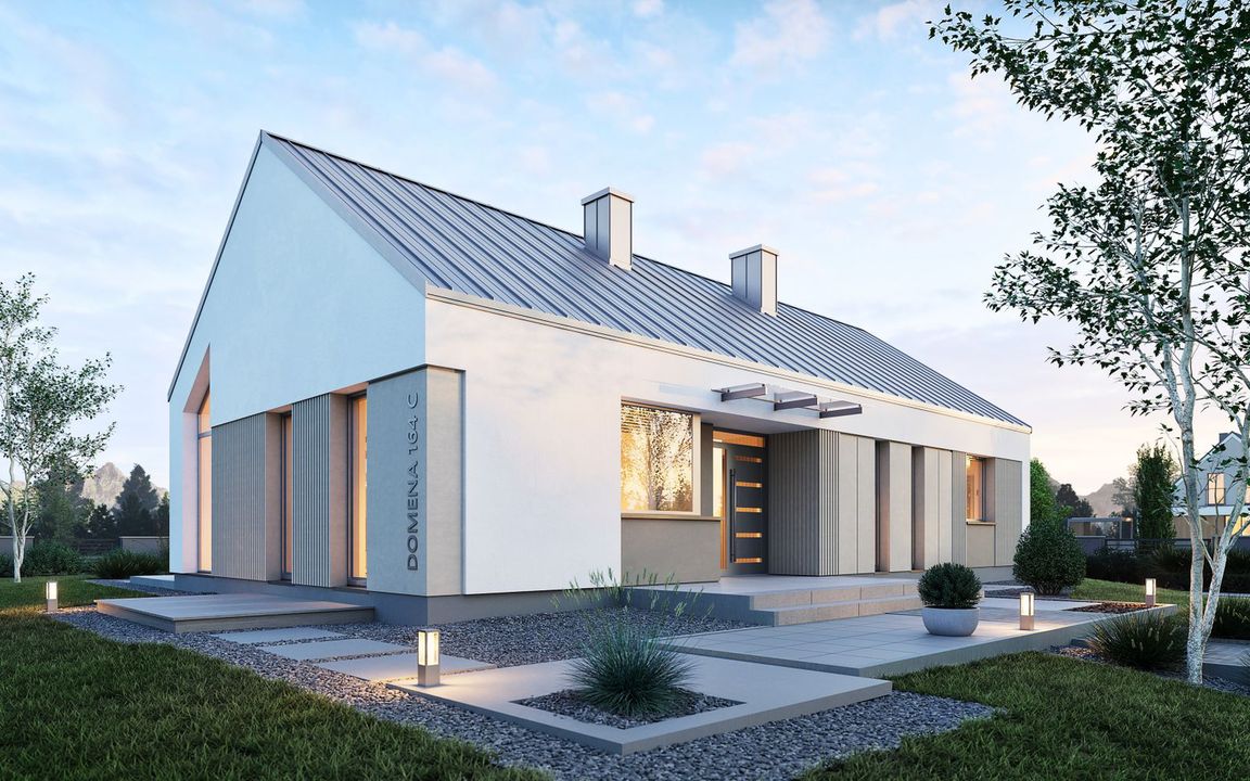 Graficzne opracowanie rzutów poglądowych widocznych na karcie projektu zostało wykonane przez Extradom.pl. Prezentowane przez Extradom.pl wizualizacje wykonane zostały przez autora projektu i należy poczytywać je jedynie za przykład i propozycję wykończenia, wizję architektoniczną autora projektu. Ostateczne wykończenie budynku może nastąpić na wiele sposobów. Szczegółowe rozwiązania zastosowane w oferowanej dokumentacji - w tym również ilość, lokalizacje i wygląd okien, drzwi, kominów - mogą w niewielkim stopniu różnić się od prezentowanej wizualizacji budynku.