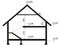 Fundamenty: bezpośrednie, na ławach i stopach fundamentowych. Ściany zewnętrzne: bloczki z bet. komórkowego - 24 cm + styropian TERMO ORGANIKA typ Fasada 12/14 cm. Ściany wewnętrzne: bloczki z bet. komórkowego (odm. 600) - 24 cm (działowe - 12/19 cm) + działowe z płyty G-K na ruszcie (poddasze). Strop: gęstożebrowy Teriva I oraz żelbetowy monolityczny gr. 14 i 24 cm.(ocieplenie ISOVER Super Mata). Elewacje: tynk - System Platinum firmy TERMO ORGANIKA, deska elewacyjna CEDRAL. Pokrycie dachu: dachówka cementowa EURONIT. Konstrukcja dachu: drewniana o układzie konstrukcyjnym mieszanym. Schody wewnętrzne: żelbetowe monolityczne zabiegowe. Ogrzewanie: kocioł gazowy jednofunkcyjny kondensacyjny, dodatkowe źródło ciepła - kominek z płaszczem wodnym