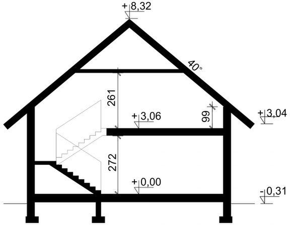 Fundamenty: bezpośrednie, na ławach i stopach fundamentowych. Ściany zewnętrzne: bloczki z bet. komórkowego - 24 cm + styropian TERMO ORGANIKA typ Fasada 12/14 cm. Ściany wewnętrzne: bloczki z bet. komórkowego (odm. 600) - 24 cm (działowe - 12/19 cm) + działowe z płyty G-K na ruszcie (poddasze). Strop: gęstożebrowy Teriva E oraz żelbetowy monolityczny gr. 14 i 24 cm. (ocieplenie ISOVER Super Mata). Elewacje: tynk - System firmy TERMO ORGANIKA, deska elewacyjna. Pokrycie dachu: dachówka cementowa. Konstrukcja dachu: drewniana o układzie konstrukcyjnym mieszanym. Schody wewnętrzne: drewniane zabiegowe. Ogrzewanie: kocioł gazowy kondensacyjny lub kocioł na paliwo stałe, dodatkowe źródło ciepła - kominek z płaszczem wodnym. Projekt jest zgodny z wymaganiami WT2025, a konstrukcja była obliczana zgodnie z eurokodami.