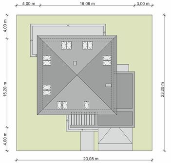 Graficzne opracowanie rzutów poglądowych widocznych na karcie projektu zostało wykonane przez Extradom.pl. Prezentowane przez Extradom.pl wizualizacje wykonane zostały przez autora projektu i należy poczytywać je jedynie za przykład i propozycję wykończenia, wizję architektoniczną autora projektu. Ostateczne wykończenie budynku może nastąpić na wiele sposobów. Szczegółowe rozwiązania zastosowane w oferowanej dokumentacji - w tym również ilość, lokalizacje i wygląd okien, drzwi, kominów - mogą w niewielkim stopniu różnić się od prezentowanej wizualizacji budynku.