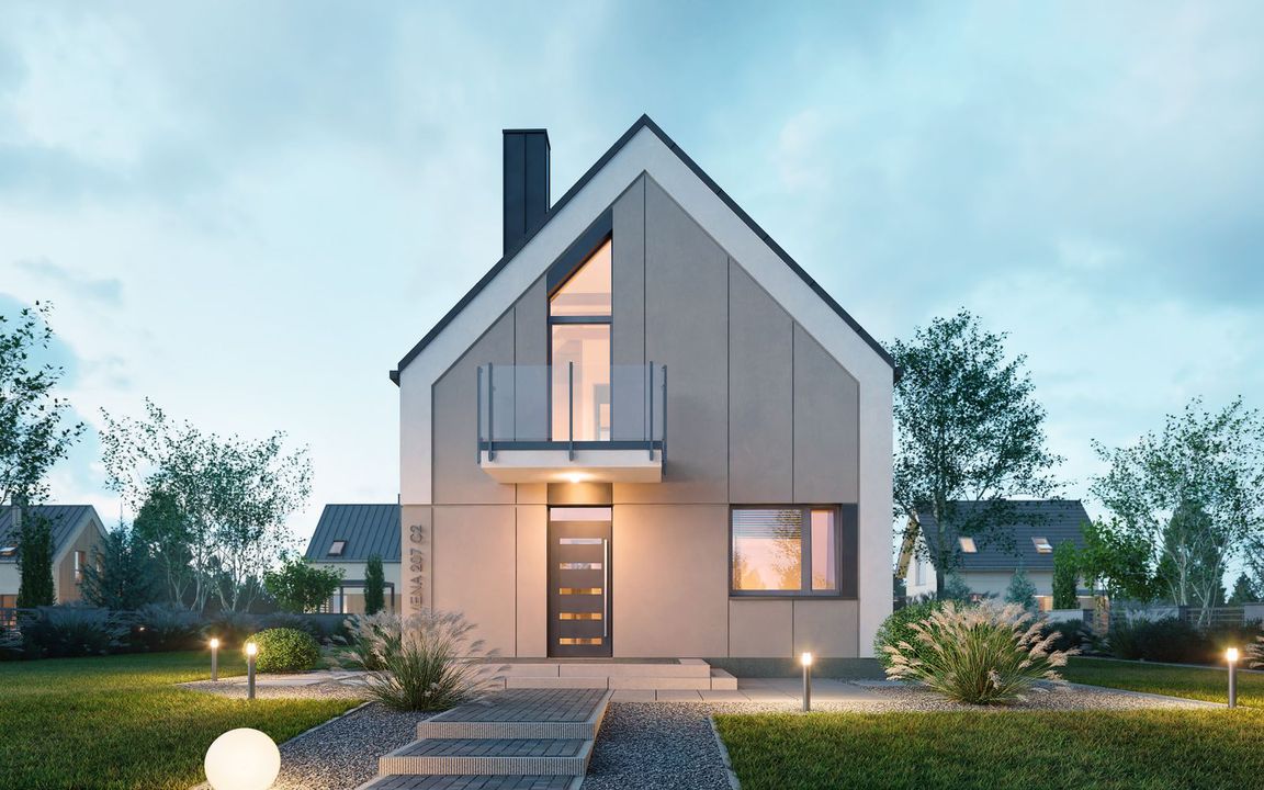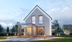 Graficzne opracowanie rzutów poglądowych widocznych na karcie projektu zostało wykonane przez Extradom.pl. Prezentowane przez Extradom.pl wizualizacje wykonane zostały przez autora projektu i należy poczytywać je jedynie za przykład i propozycję wykończenia, wizję architektoniczną autora projektu. Ostateczne wykończenie budynku może nastąpić na wiele sposobów. Szczegółowe rozwiązania zastosowane w oferowanej dokumentacji - w tym również ilość, lokalizacje i wygląd okien, drzwi, kominów - mogą w niewielkim stopniu różnić się od prezentowanej wizualizacji budynku.
