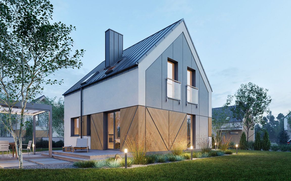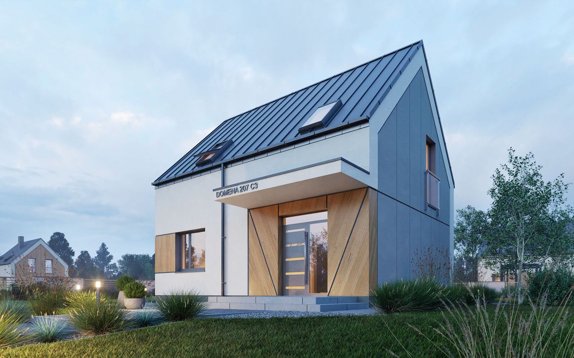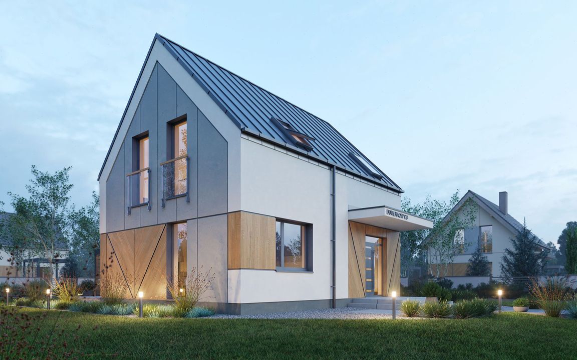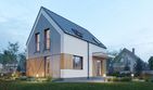 Graficzne opracowanie rzutów poglądowych widocznych na karcie projektu zostało wykonane przez Extradom.pl. Prezentowane przez Extradom.pl wizualizacje wykonane zostały przez autora projektu i należy poczytywać je jedynie za przykład i propozycję wykończenia, wizję architektoniczną autora projektu. Ostateczne wykończenie budynku może nastąpić na wiele sposobów. Szczegółowe rozwiązania zastosowane w oferowanej dokumentacji - w tym również ilość, lokalizacje i wygląd okien, drzwi, kominów - mogą w niewielkim stopniu różnić się od prezentowanej wizualizacji budynku.