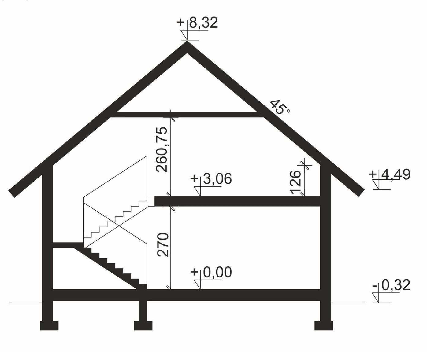 Fundamenty bezpośrednie, na ławach i stopach fundamentowych Ściany zewnętrzne bloczki wapienno-piaskowe - 24 cm + styropian TERMO ORGANIKA typ Fasada 20 cm Ściany wewnętrzne bloczki wapienno-piaskowe – 24 cm (działowe – bloczki wapienno-piaskowe - 12/8 cm) Strop żelbetowy monolityczny Elewacje tynk - systemowy firmy TERMO ORGANIKA, tynk lub okładzina imitująca drewno Pokrycie dachu blacha płaska Konstrukcja dachu tradycyjna drewniana Schody wewnętrzne schody drewniane oraz schody strychowe FAKRO Ogrzewanie kocioł na gaz, dodatkowe źródło ciepła - kominek