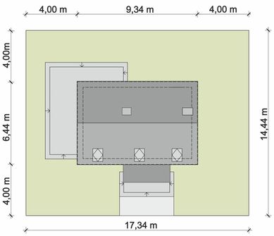 Graficzne opracowanie rzutów poglądowych widocznych na karcie projektu zostało wykonane przez Extradom.pl. Prezentowane przez Extradom.pl wizualizacje wykonane zostały przez autora projektu i należy poczytywać je jedynie za przykład i propozycję wykończenia, wizję architektoniczną autora projektu. Ostateczne wykończenie budynku może nastąpić na wiele sposobów. Szczegółowe rozwiązania zastosowane w oferowanej dokumentacji - w tym również ilość, lokalizacje i wygląd okien, drzwi, kominów - mogą w niewielkim stopniu różnić się od prezentowanej wizualizacji budynku.