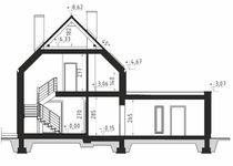 Graficzne opracowanie rzutów poglądowych widocznych na karcie projektu zostało wykonane przez Extradom.pl. Prezentowane przez Extradom.pl wizualizacje wykonane zostały przez autora projektu i należy poczytywać je jedynie za przykład i propozycję wykończenia, wizję architektoniczną autora projektu. Ostateczne wykończenie budynku może nastąpić na wiele sposobów. Szczegółowe rozwiązania zastosowane w oferowanej dokumentacji - w tym również ilość, lokalizacje i wygląd okien, drzwi, kominów - mogą w niewielkim stopniu różnić się od prezentowanej wizualizacji budynku.