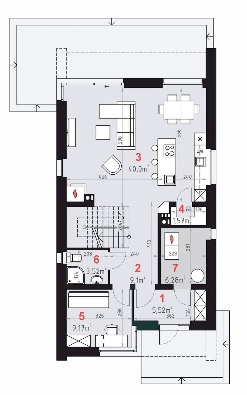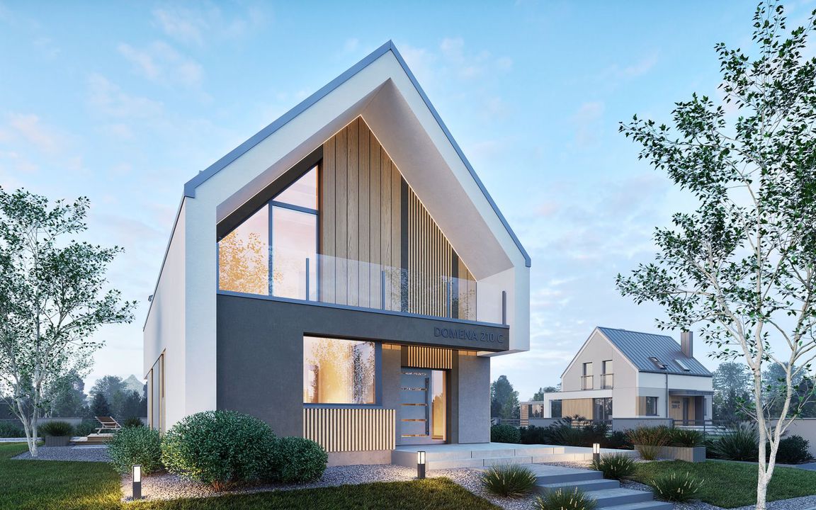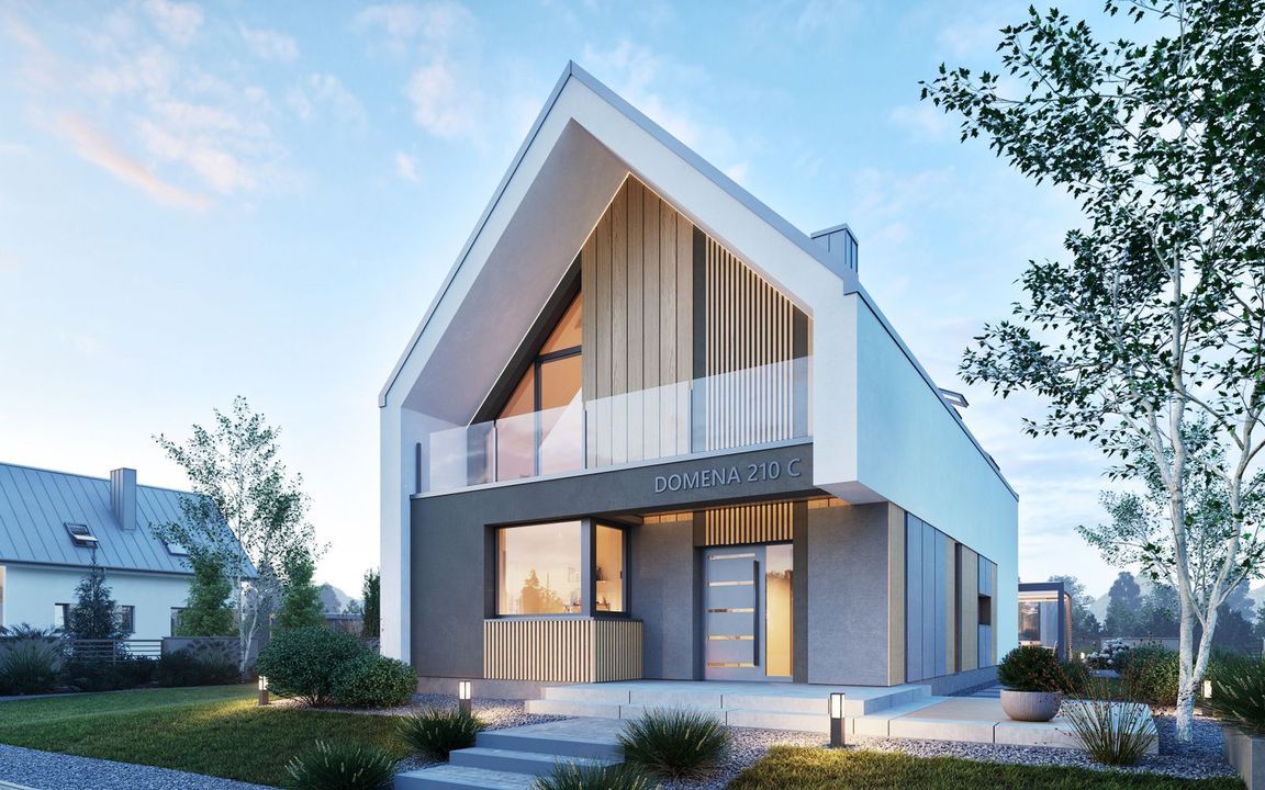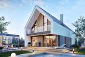 Graficzne opracowanie rzutów poglądowych widocznych na karcie projektu zostało wykonane przez Extradom.pl. Prezentowane przez Extradom.pl wizualizacje wykonane zostały przez autora projektu i należy poczytywać je jedynie za przykład i propozycję wykończenia, wizję architektoniczną autora projektu. Ostateczne wykończenie budynku może nastąpić na wiele sposobów. Szczegółowe rozwiązania zastosowane w oferowanej dokumentacji - w tym również ilość, lokalizacje i wygląd okien, drzwi, kominów - mogą w niewielkim stopniu różnić się od prezentowanej wizualizacji budynku.