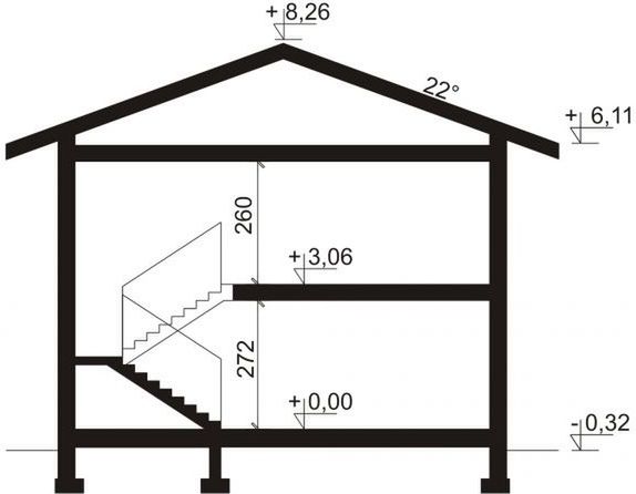 Fundamenty: bezpośrednie, na ławach i stopach fundamentowych. Ściany zewnętrzne: bloczki z bet. komórkowego - 24 cm + styropian TERMO ORGANIKA typ Fasada 18/20 cm. Ściany wewnętrzne: bloczki z bet. komórkowego - 24 cm (działowe - 12 cm) + działowe z płyty G-K na ruszcie (piętro). Strop: żelbetowy monolityczny (ocieplenie ISOVER Super Mata). Elewacje: tynk - System Platinum firmy TERMO ORGANIKA, deska elewacyjna, płytki kamienne. Pokrycie dachu: dachówka cementowa. Konstrukcja dachu: prefabrykowane wiązary. Schody wewnętrzne: monolityczne, płytowe dwubiegowe oraz schody strychowe FAKRO. Ogrzewanie: kocioł gazowy kondensacyjny lub kocioł na paliwo stałe, dodatkowe źródło ciepła - kominek z płaszczem wodnym. Projekt jest zgodny z wymaganiami WT2024, a konstrukcja była obliczana zgodnie z eurokodami.