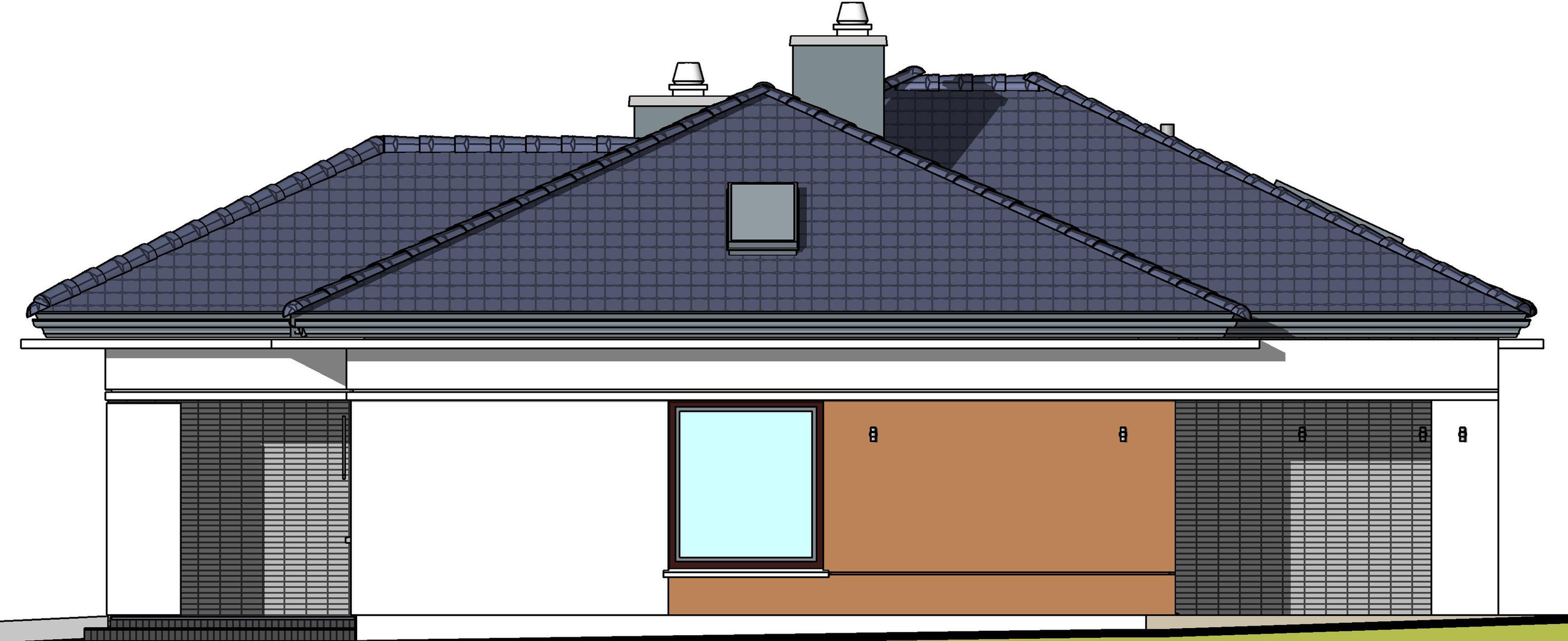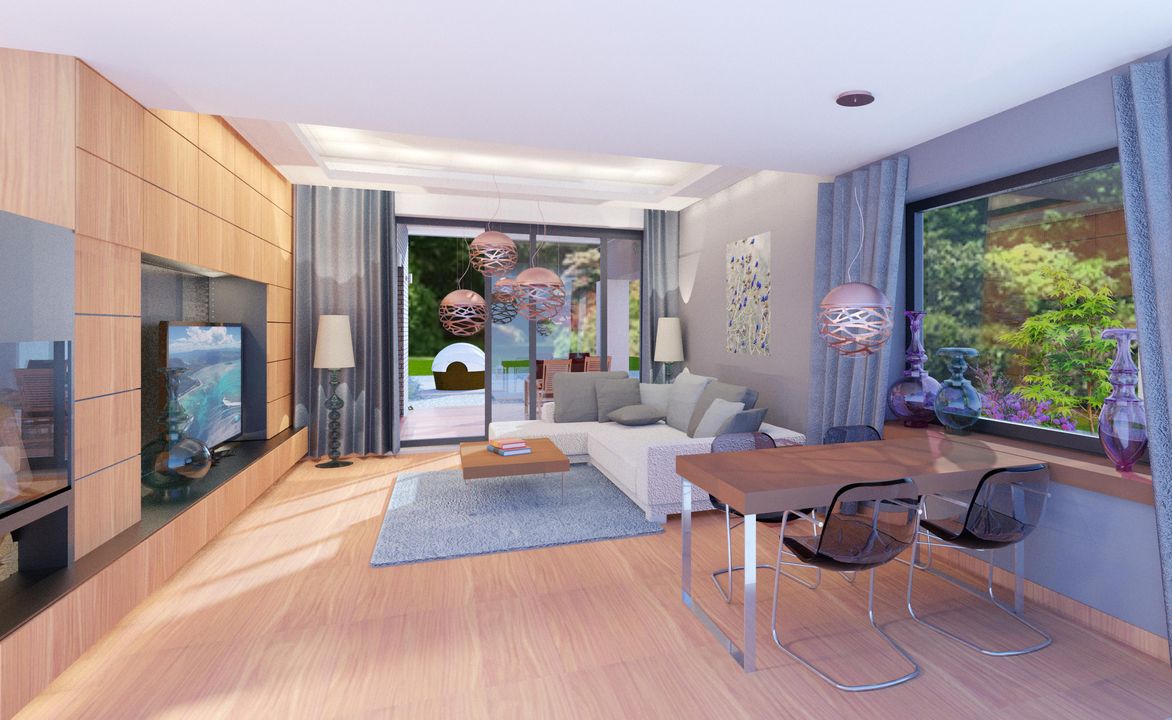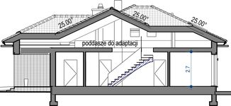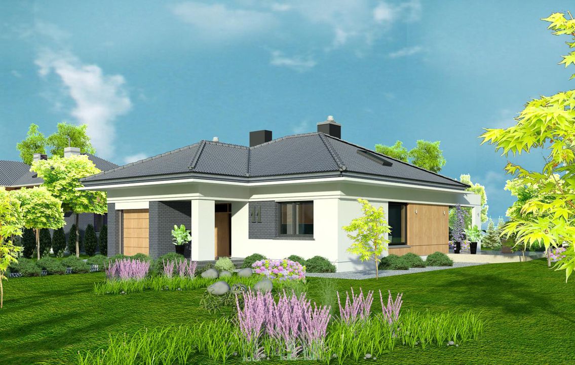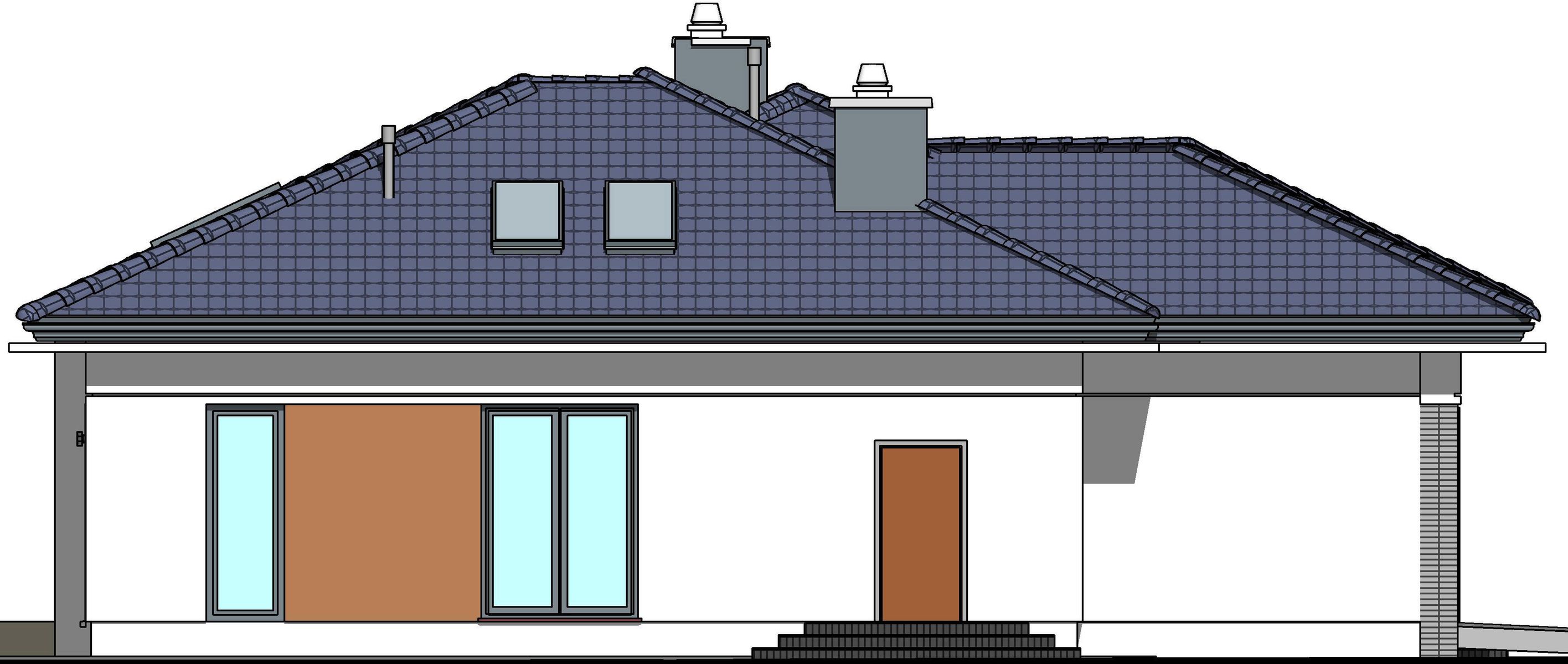 Graficzne opracowanie rzutów poglądowych widocznych na karcie projektu zostało wykonane przez Extradom.pl. Prezentowane przez Extradom.pl wizualizacje wykonane zostały przez autora projektu i należy poczytywać je jedynie za przykład i propozycję wykończenia, wizję architektoniczną autora projektu. Ostateczne wykończenie budynku może nastąpić na wiele sposobów. Szczegółowe rozwiązania zastosowane w oferowanej dokumentacji - w tym również ilość, lokalizacje i wygląd okien, drzwi, kominów - mogą w niewielkim stopniu różnić się od prezentowanej wizualizacji budynku.