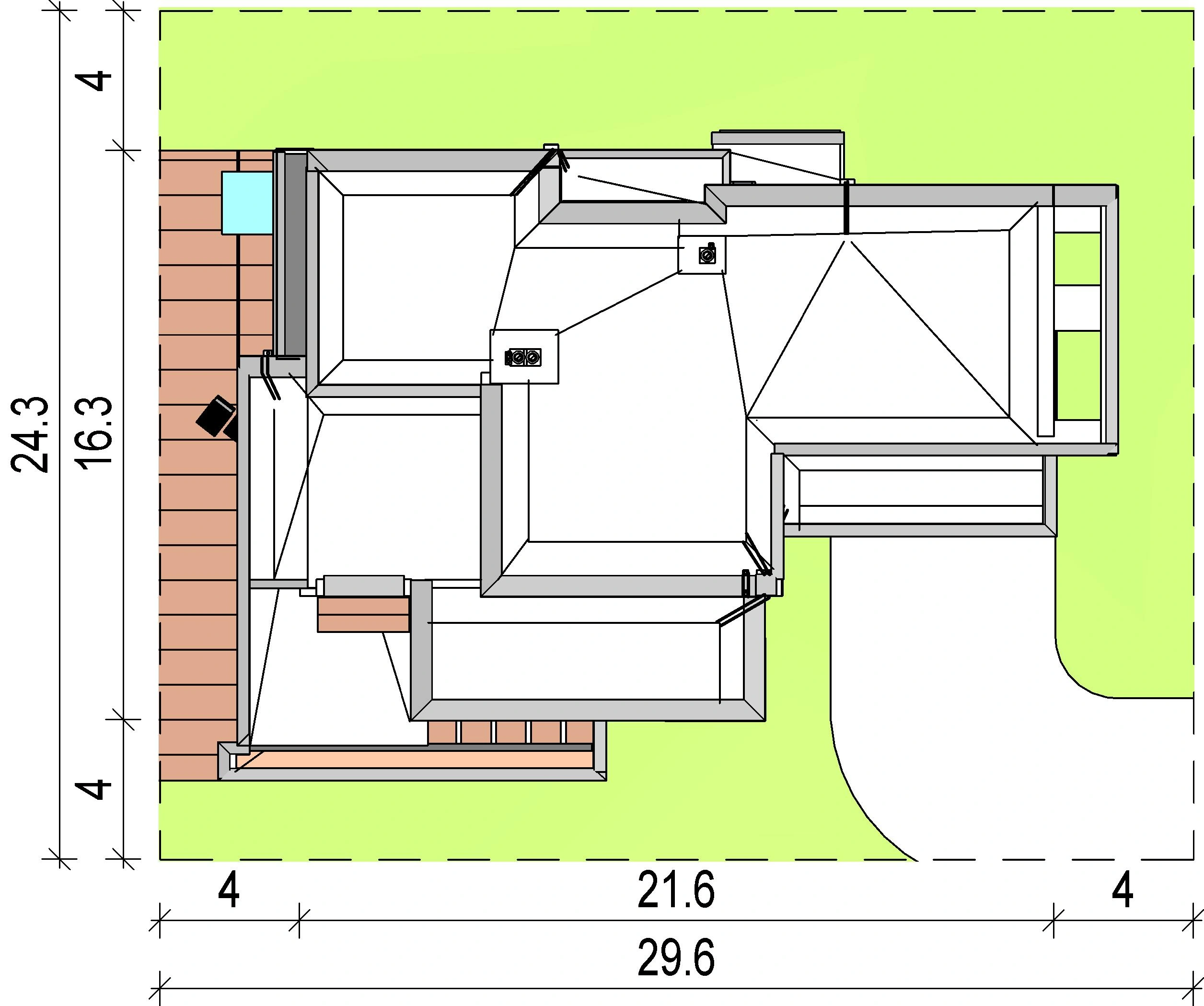 Graficzne opracowanie rzutów poglądowych widocznych na karcie projektu zostało wykonane przez Extradom.pl. Prezentowane przez Extradom.pl wizualizacje wykonane zostały przez autora projektu i należy poczytywać je jedynie za przykład i propozycję wykończenia, wizję architektoniczną autora projektu. Ostateczne wykończenie budynku może nastąpić na wiele sposobów. Szczegółowe rozwiązania zastosowane w oferowanej dokumentacji - w tym również ilość, lokalizacje i wygląd okien, drzwi, kominów - mogą w niewielkim stopniu różnić się od prezentowanej wizualizacji budynku.